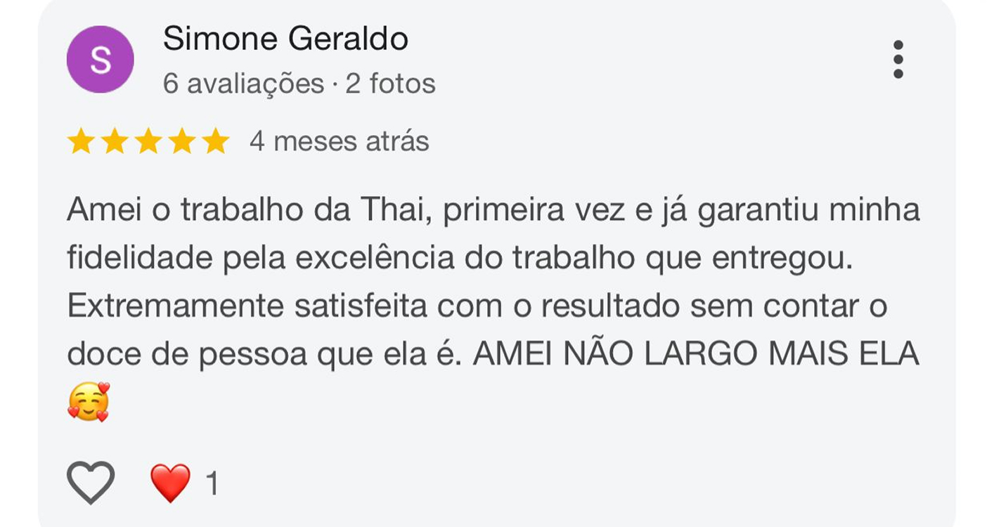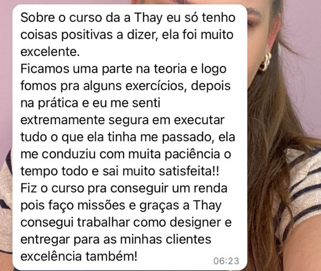 apenas 90 dias, eu estava em busca de me profissionalizar com algo em que tivesse prazer. Com muita dedicação e fé encontrei o meu propósito, e hoje tenho meu próprio espaço, onde compartilho todo meu conhecimento, e nele que eu vou te ajudar a ter sua vida transformada.